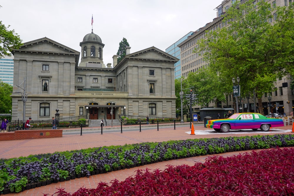 Dit plein wordt vaak liefkozend “Portland’s Living Room” genoemd en het is het kloppende hart van de stad. Pioneer Courthouse Square is omringd door indrukwekkende architectuur, waaronder het gerechtsgebouw uit 1875. Op het plein zijn vaak kunstwerken te vinden. Zo was er een hele regenboog van bloemen toen ik er was. Ook vinden er regelmatig concerten, festivals, markten en culturele evenementen plaats op het Pioneer Courthouse Square, wat dit plein tot een levendige, dynamische plek maakt waar de ziel van de stad tot leven komt.