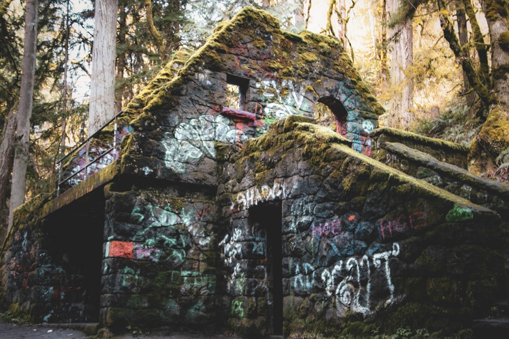 Ik hou wel van plekken met een (eng) verhaal, dus zou nog graag eens de korte wandeling naar Witch’s Castle in het Macleay Park maken. Dit vervallen huisje staat op de plek waar volgens de legende een gruwelijke moord plaatsvond. Een landeigenaar (Danford Balch) huurde een klusjesman (Mortimer Stump) in om te helpen met de ontwikkeling van zijn land. De zoon van Mortimer werd verliefd op de dochter van Danford, maar mocht van hem niet met haar trouwen. Ze gingen er vandoor om elders te trouwen en kwamen na vijftien jaar weer terug naar huis. Danford was woest en schoot de zoon van Mortimer dood. Om deze reden werd hij als eerste persoon ooit in Portland geëxecuteerd.