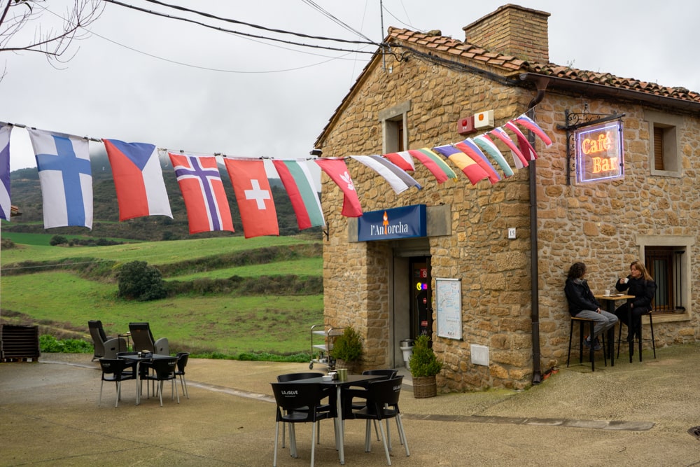 Ik tref daar ook de Duitse Chris. Hij maakt een documentaire over de Camino en heeft een drone mee. Tot nu toe is hij de enige die ik heb ontmoet met een zwaardere tas dan ik (ik heb een grote camera en een laptop mee). We lopen samen door naar Azqueta. In dit piepkleine dorp staat zowaar een bar die geopend is. Tijd voor een tortilla en een cafe con leche.