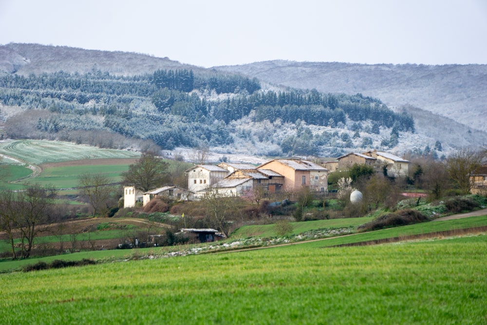 Na een ontbijtje in de albergue (dit hebben we last minute bijgeboekt, want het is zondag dus we verwachten dat er onderweg niet veel open is) gaan we op pad. Het is ijskoud en er ligt zelfs een klein laagje sneeuw op de bergen en de dakpannen. Het is voor het eerst dat ik mijn handschoenen aantrek. We wandelen van het ene na het andere piepkleine dorpje en ontmoeten onderweg regelmatig Jose uit Mexico en Gene uit de VS. Verder is het rustig qua wandelaars.