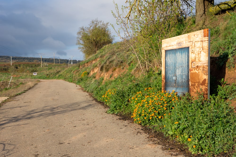 Na vijf kilometer heb ik de keuze; verder langs de snelweg of 800 meter omlopen via een dorpje. Ik kies voor het laatste en dat is echt prachtig. Er staan allemaal kunstwerken langs de weg en van de snelweg merk ik niets meer. In Ventosa is zelfs een bar geopend, perfecte timing voor een pauze met een broodje kaas en kop thee.