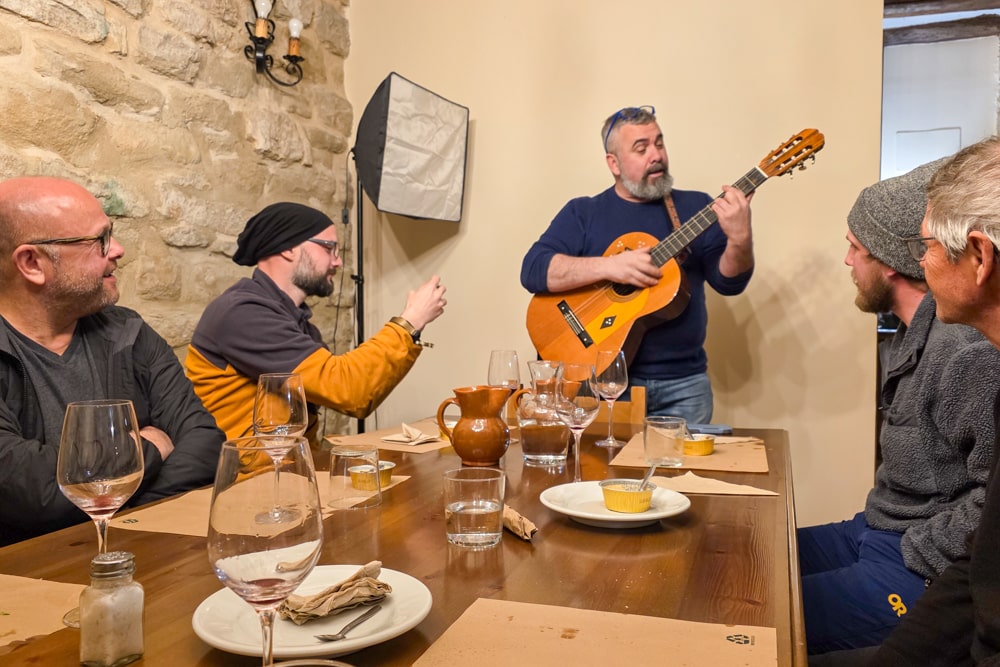 Yoshi en ik zijn de enige gasten en worden volledig in de watten gelegd door eigenaar José. Hij vertelt eindeloos over de bijzondere mensen die hij heeft ontmoet en schotelt ons een heerlijke (speciaal voor mij vegetarische) pelgrimsmaaltijd voor. Van vermoeide benen merk ik amper iets, het is een heerlijke plek om te ontspannen.