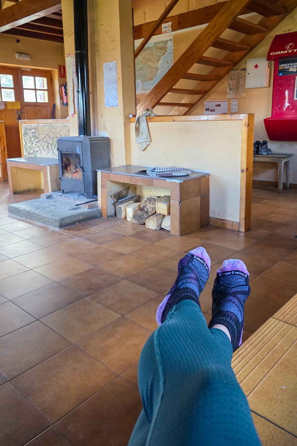 Terug in de herberg treffen we onze “oude” vrienden Gene en Tony en we kletsen gezellig voor de warme houtkachel, de enige warmtebron in de herberg. Ik voel me goed vandaag, niet al te moe en ik heb gelukkig nog steeds geen blaren of andere blessures. Laten we dat vooral zo houden.