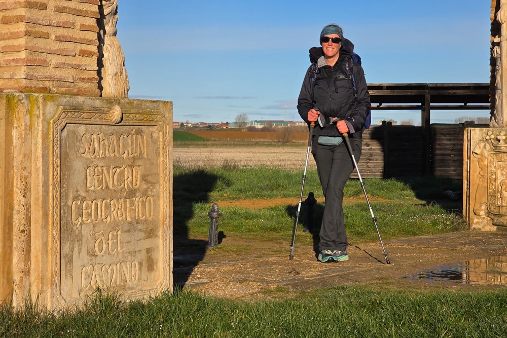 Na 8 kilometer staan er een paar beelden naast het pad; dit is het geografische middelpunt van de Camino! Qua kilometers waren we gisteren of eergisteren al op de helft, maar dit voelt “echter”. Pedro (Spanje) en Jean-Michel (Zwitserland) die gisteren in hetzelfde hostel sliepen komen ook voorbij en we doen even een korte fotoshoot.