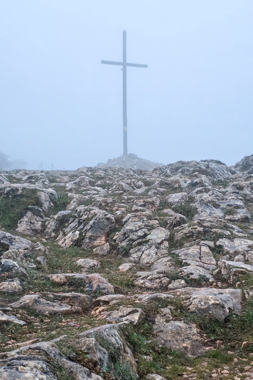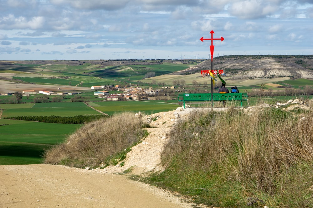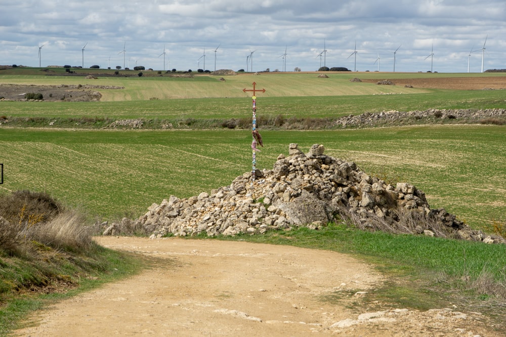 Ik vertrek lekker vroeg vandaag, want ik wil zoveel mogelijk tijd doorbrengen in Burgos, dit is namelijk na Pamplona de grootste stad op de Camino Francés. Samen met Gene stap ik naar buiten en we mogen meteen onze regenjas aantrekken. Het is namelijk mistig en het regent een beetje, yuk. In stilte vervolgen we onze weg op de Camino. Het begint met een klim naar een uitzichtpunt (waar we niets van zien door de mist) en daarna is het alleen maar omlaag.