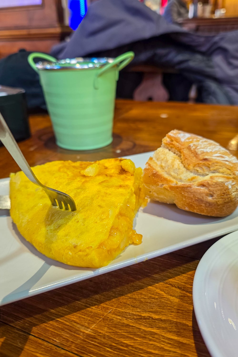 Iets verderop is de stad Sahagún, vol toffe (Camino)street art en klepperende ooievaars. Het eerste open café dat we zien is een Ierse bar en daar smullen we van een van de beste tortillas tot nu toe.