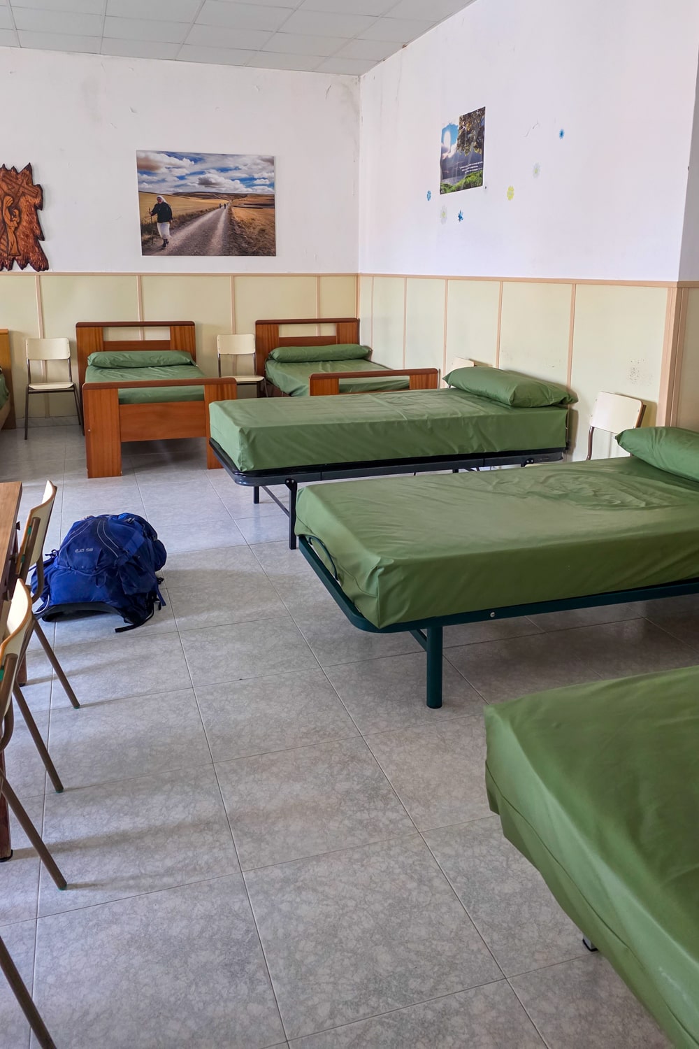 We komen al om half twaalf aan bij de albergue in Carrión de los Ondes. Een non checkt ons in en het is absoluut een van de fijnste accommodaties tot nu toe. Ruim opgezet, geen stapelbedden en een grote keuken. Hoewel de kamer (12 van de 13 bedden bezet) vrij vol is, voelt het totaal niet druk.