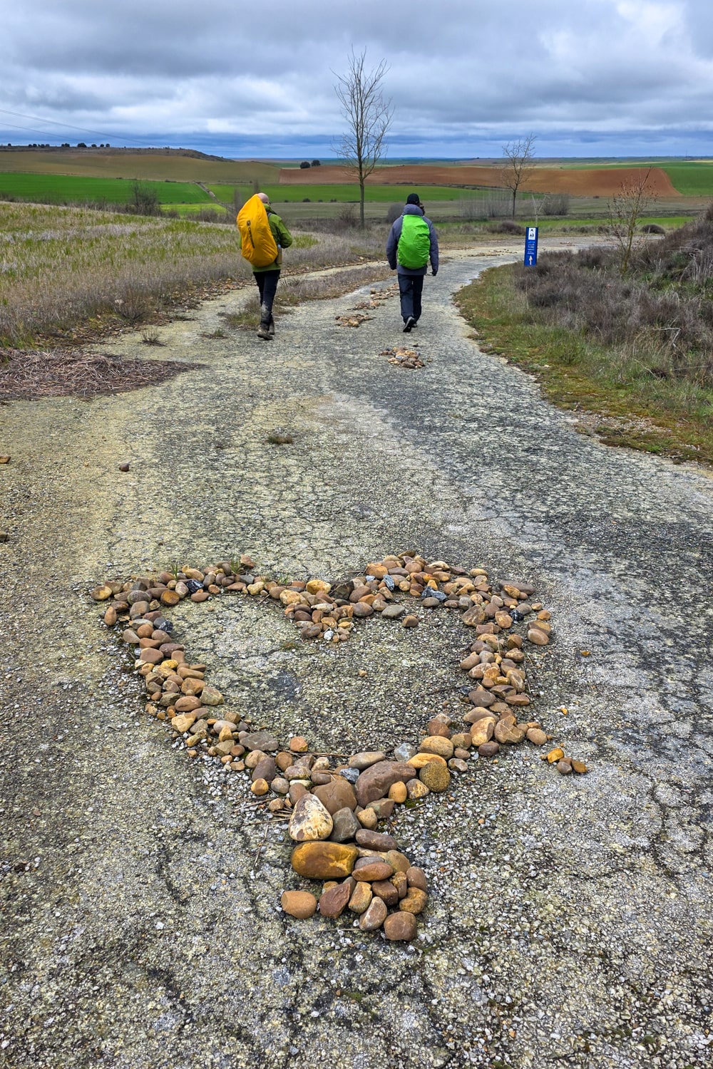 Samen gaan we verder en wandelen we de Meseta op. Dit is een vrij vlak deel van de Camino, zo’n 180 kilometer lang en je loopt vooral door eindeloze velden. Veel mensen zien hier tegenop en vinden het wat saai, maar ik vind het tot nu toe prachtig. Heerlijk wandelen door het niemandsland. De kilometers gaan snel, het zonnetje schijnt en ik geniet. Hoe geweldig dat ik dit kan en mag doen?