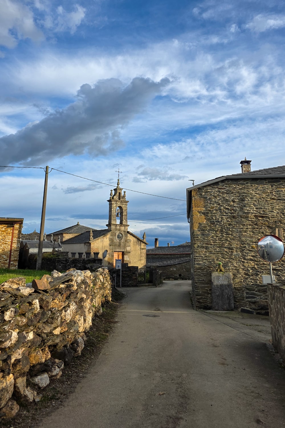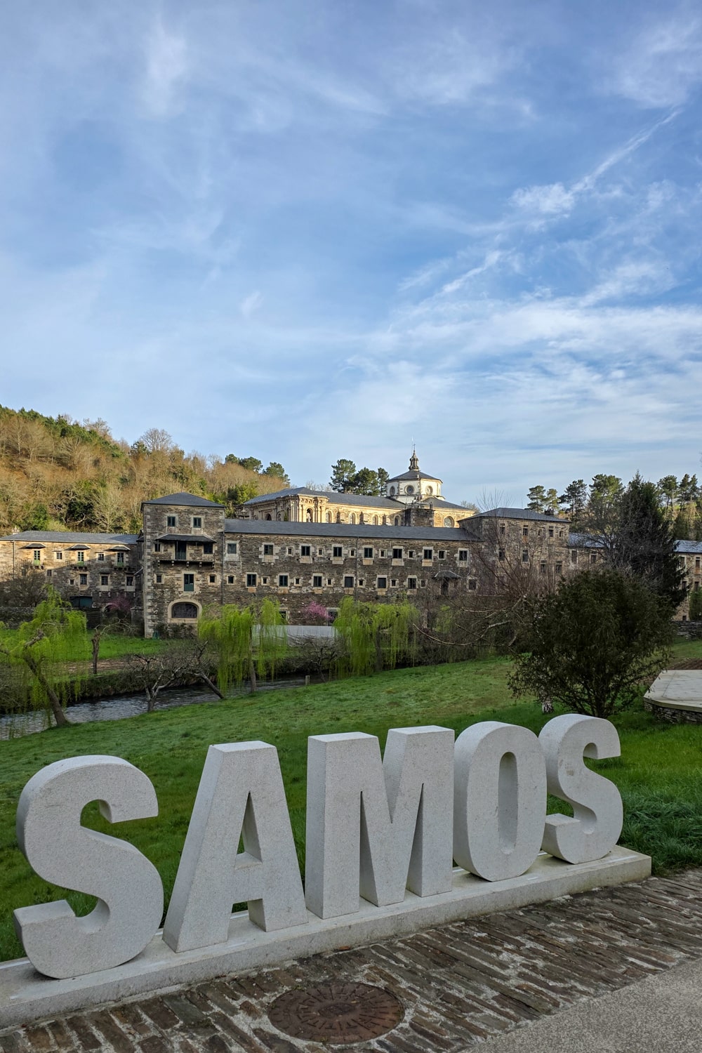 Het is weer heel anders dan gisteren, toen was het vooral indrukwekkende uitzichten, vandaag zijn het piepkleine dorpjes, watervallen en smalle bospaden die ik ken van mijn eerdere bezoek aan Galicië. Een van de hoogtepunten is het klooster van Samos, prachtig gelegen in het dal.