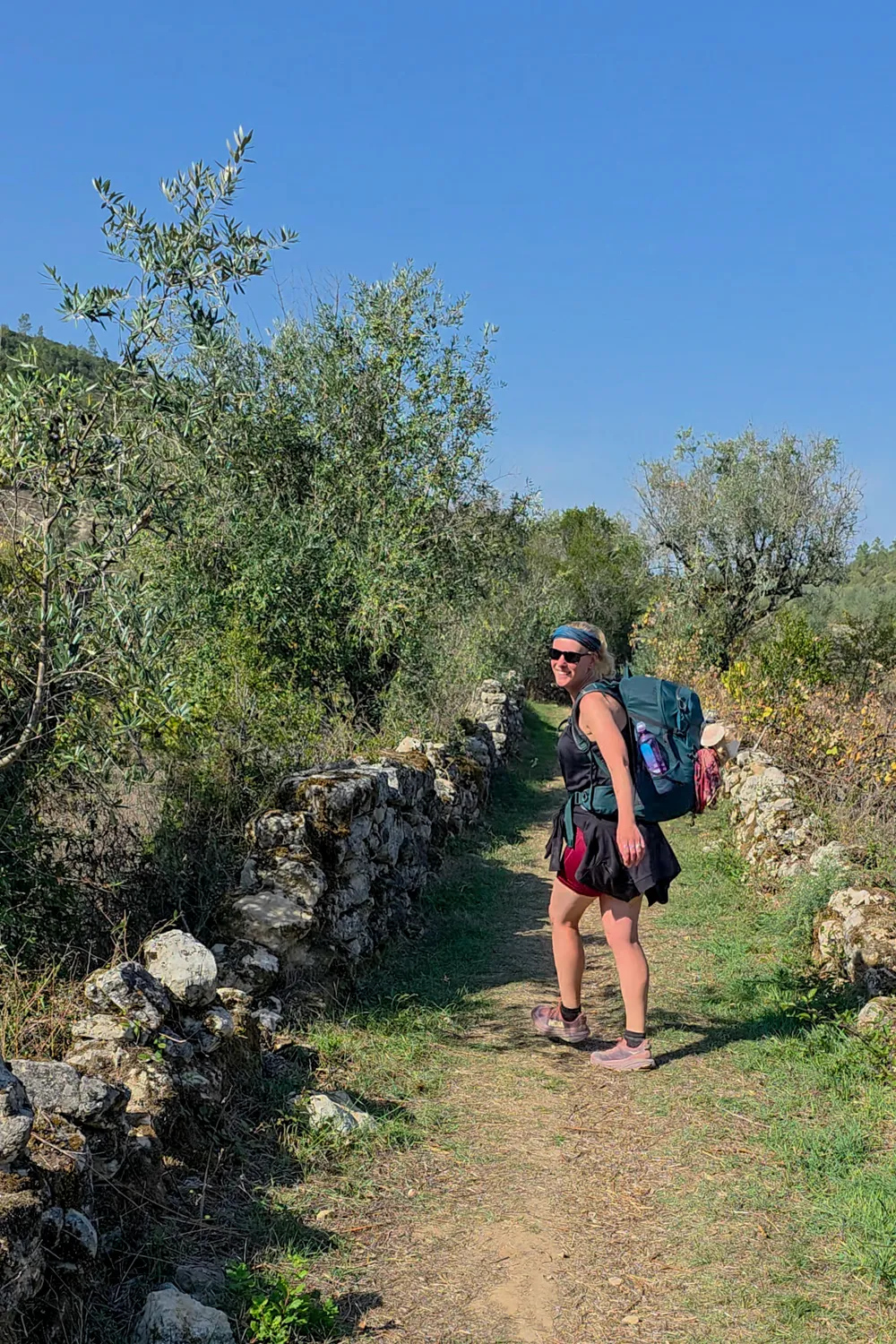 Ik wil graag alleen wandelen vandaag, dus Alan is al weg als ik de deur uitstap. Het is een heerlijke ochtend en het pad loopt door de wijngaarden en olijfbomen. Prachtig! Na 3,5 kilometer is er een café, dus neem ik meteen pauze. Zo kom ik prima de dag door. Het pad blijft relatief vlak en ik heb ook totaal geen last van de achillespees, top!