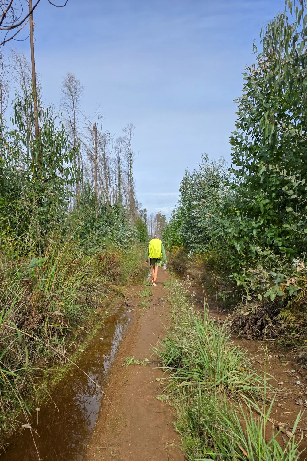 Op een heel klein stukje lekker ruikend eucalyptusbos in het begin na, wandel ik de gehele dag over het asfalt. Eerlijk is eerlijk, het is weinig inspirerend, maar het schiet wel flink op met de kilometers op deze manier.