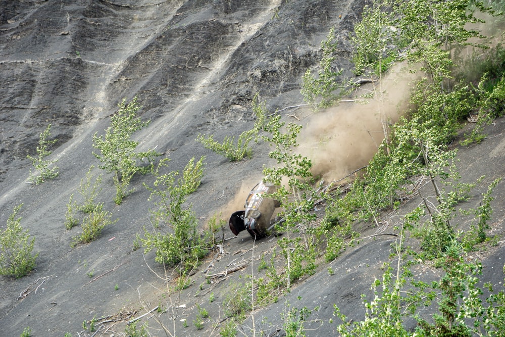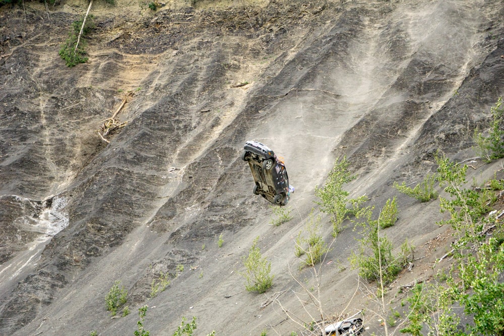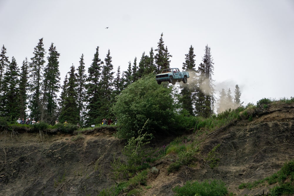En dan begint het grote event. Omdat het in Alaska ‘s nachts niet donker wordt (zonsondergang is rond 12 uur en hij is voor 4 uur weer op), zie je hier geen vuurwerk op de 4th of July. In plaats daarvan rijden ze (onbemande) auto’s van een klif. Echt bizar, het lijkt wel alsof ik in een film ben beland. Er gaan een stuk of 25 naar beneden, elke keer onder hard gejuich. Op gegeven momen zelfs een camper en daar blijft echt niets van over. Heel bijzonder en uniek om eens mee te maken.