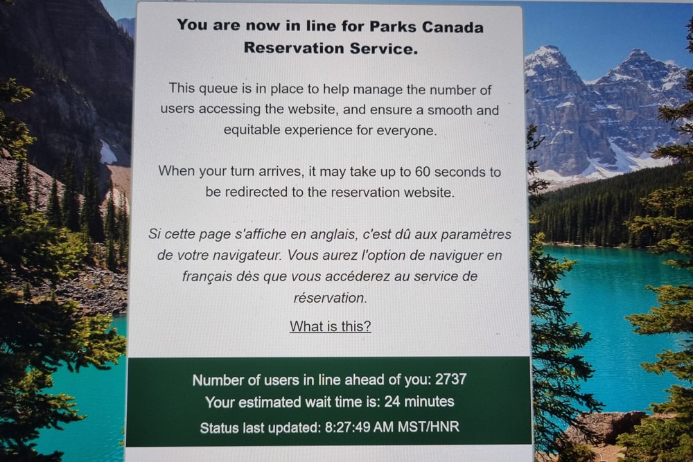 Zelf heb ik mijn campings gereserveerd zodra de boekingen open gingen. Voor mijn plek op de camping bij Lake Louise (Banff) moest ik online behoorlijk lang in de wachtrij staan. Uiteindelijk lukte het me om een plekje te bemachtigen, maar het geeft wel aan hoe populair deze campings zijn. Wil je zeker zijn van een plek, dan moet je er op tijd bij zijn.