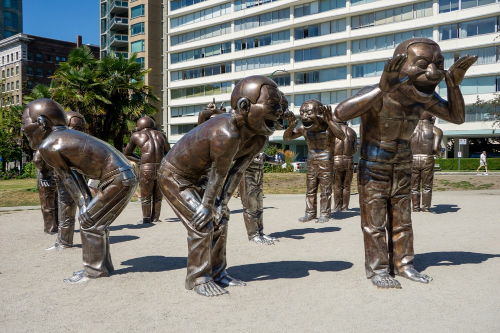 Naast English Bay Beach vind je nog een heel tof kunstwerk dat bestaat uit veertien bronzen mannen die ontzettend hard lachen. Erg leuk om even doorheen te lopen, je lacht vanzelf mee en je wordt er ook helemaal vrolijk van. En laat dat nou net de bedoeling zijn van de Chinese kunstenaar Yue Minjun.