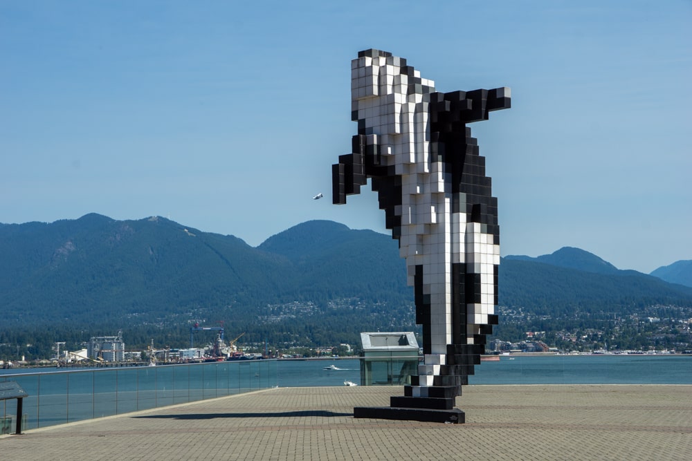 De Digital Orca staat op het dak van de Vancouver Convention Centre en is gemaakt door de Canadese kunstenaar Douglas Coupland. Hij is maar liefst acht meter hoog en echt heel tof om te zien.