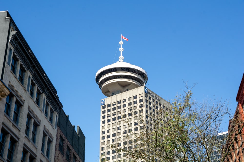 Het meest opvallende bouwwerk aan de rand van Gastown is de Vancouver Lookout. Dit is een rond observatieplatform met een hoogte van 168 meter. Vanaf hier heb je een adembenemend 360-graden uitzicht over de stad, de haven en de omliggende bergen.