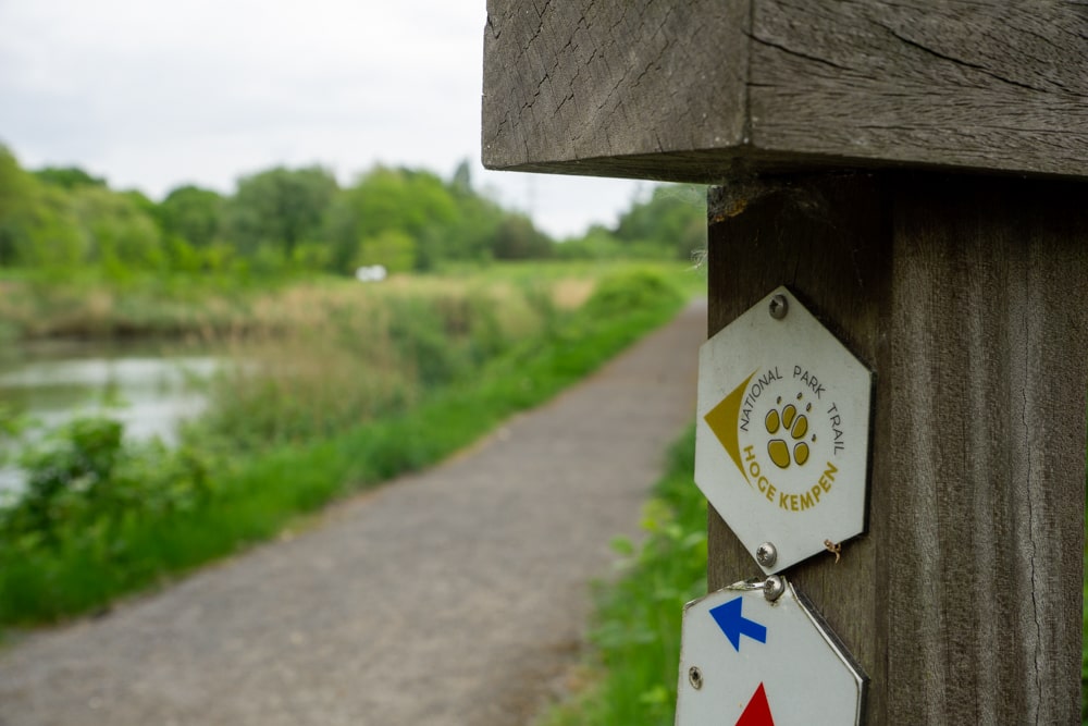 As I mentioned in the introduction, navigating this trail is incredibly easy. There are signs everywhere with the logo of Hoge Kempen National Park (a paw print made of stones) and the text “National Park Trail.” The trail is clearly marked in both directions.