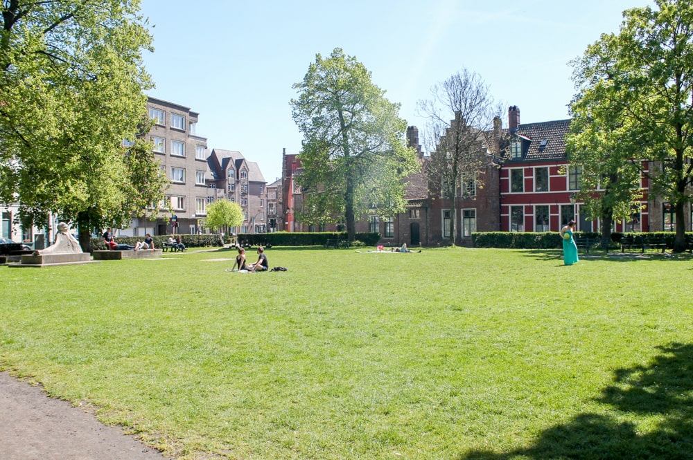 About a fifteen-minute walk from the center of Ghent, you will find the Old Beguinage Sint-Elisabeth. If you want to avoid the tourist crowds, this is the place to be. It is not a typically walled beguinage as you might know from other cities, it feels more like a separate neighborhood in the city. You will find narrow streets with white houses and a beautiful church. When the weather is nice, it is nice to relax in the Begijnhofdriespark.