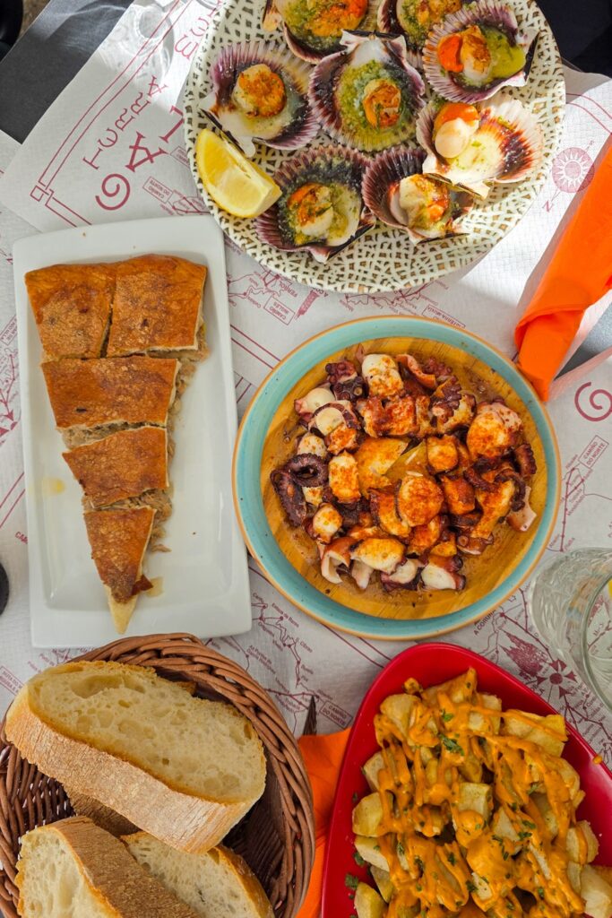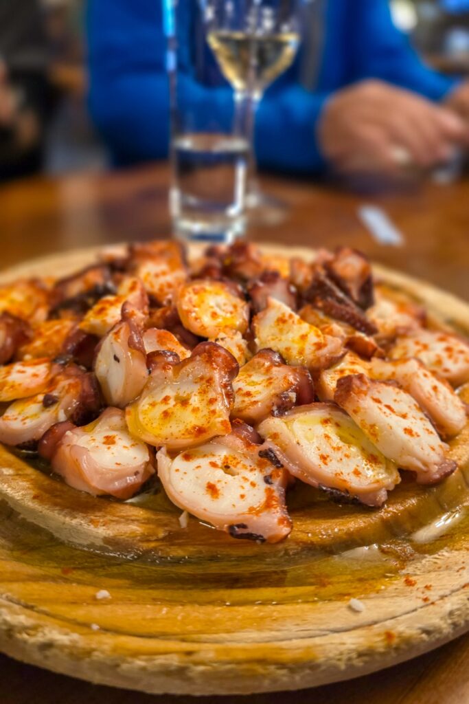 Together with Tony, Fran, and Yoshi, I have lunch in Portomarín. It’s the first time pulpo (octopus) appears on the table, and I already knew from a previous visit to Galicia how good it is. The guys are totally into it too. I’m cracking up because the three of them are such foodies. They can’t stop talking about how tasty everything is.
