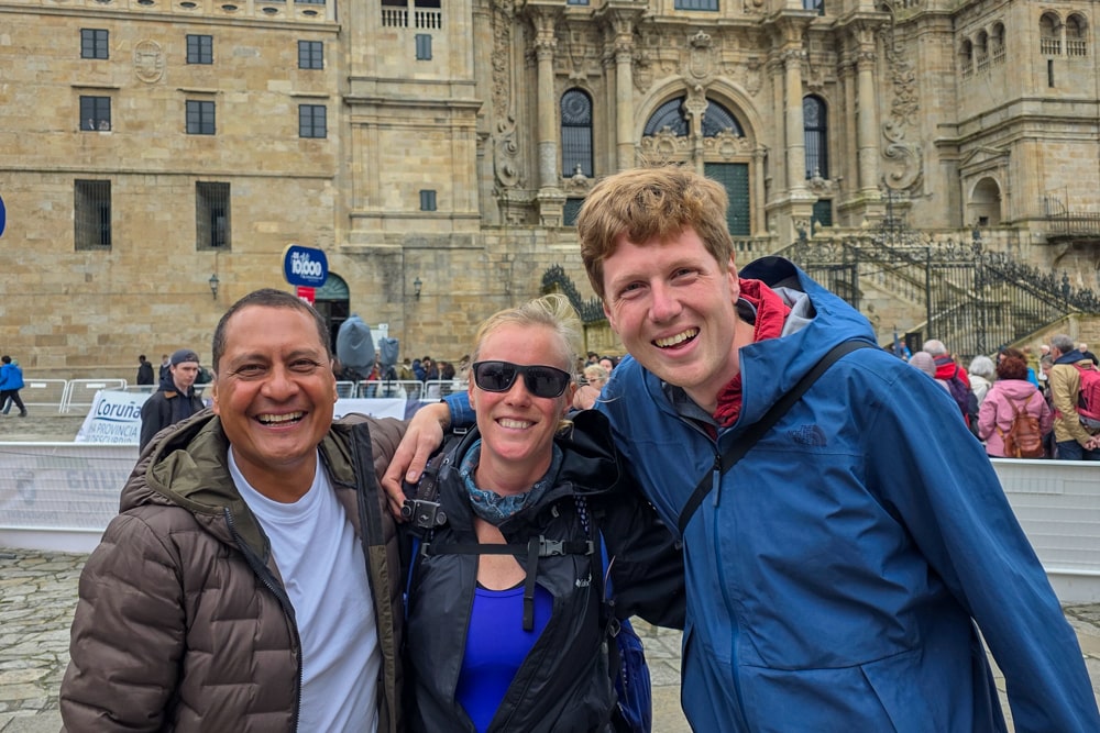 A little before one in the afternoon, we step into the main square in front of the cathedral. We made it. We even form a guard of honor with our walking sticks for Rob. So much respect for this 80-something who just did it. And there, in the square, I’m greeted by my old Camino friends Patrick and James. It’s so good to see them again after three weeks.