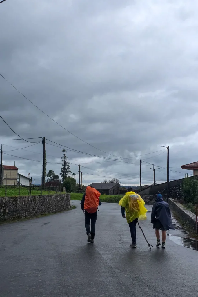 For the first few hours I see no one and wander through tiny villages. Mostly green though. I haven’t seen this much forest anywhere else on the Camino. After a coffee break I get back on the road and it starts to drizzle. Suddenly I see pilgrims both in front of me and behind me. This route is busier than I expected.