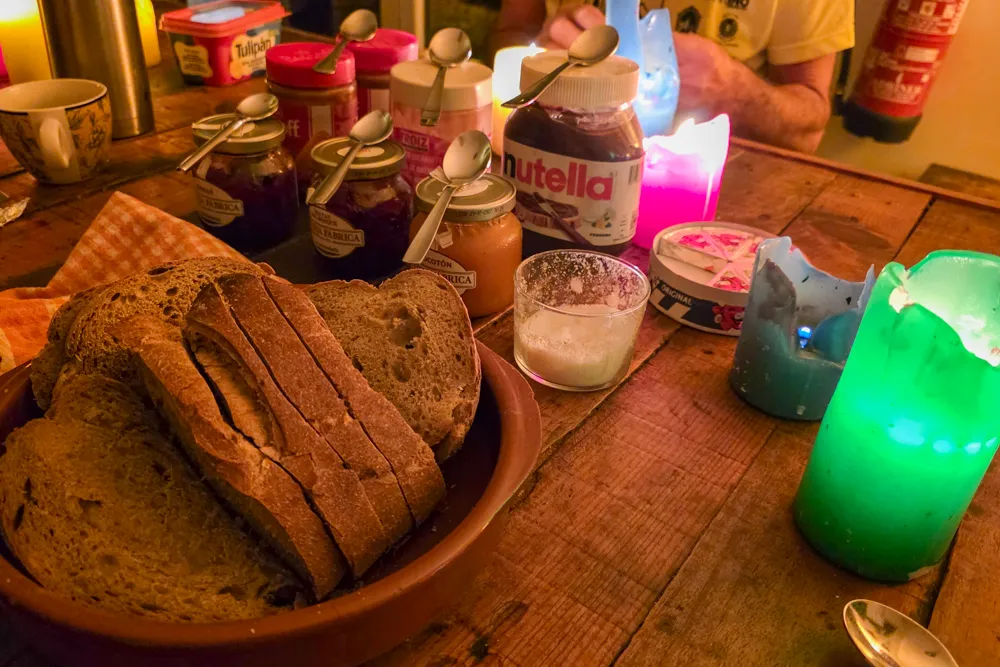 It rains all night, but when I wake up my weather app shows a dry day ahead. Perfect, because I have my eye on an albergue about 32 kilometers away. After a cozy breakfast by candlelight, I step outside around eight with good spirits. The bumps on my head look much better and I feel ready for a long day of walking.