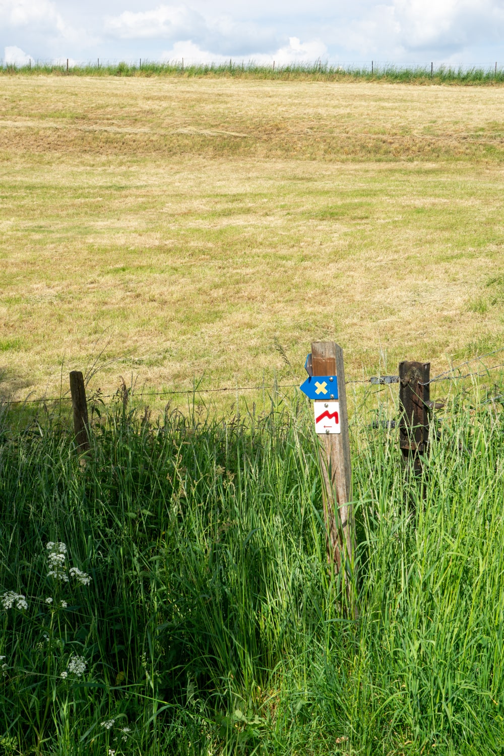 Na zo’n 20 kilometer kijk ik al langzaam uit naar een bushalte om terug te reizen naar Berdorf, maar ik vind het allemaal net iets te ver lopen van de trail, dus ik ga nog een paar kilometer door. Ik kom even het bos uit, en het is ook wel lekker om het heuvelachtige landschap te zien en de zon op mijn gezicht te voelen.