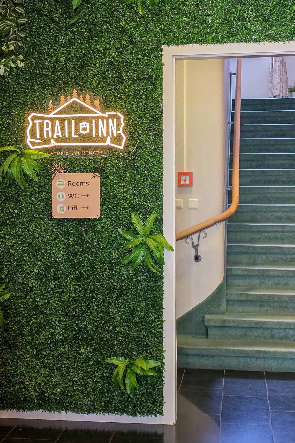- Trail-Inn Natur & Sporthotel (3⭐) is de plek waar ik zelf sliep tijdens mijn wandeling op de Mullerthal Trail. Dit is helemaal gericht op fietsers en wandelaars (er is een speciale ruimte voor fietsen en wandelschoenen). Je kunt echt heerlijk eten in het bijbehorende restaurant en ook het ontbijt is goed en uitgebreid. Je kunt hier zelfs een lunchbox aanvragen om mee te nemen tijdens je tocht.