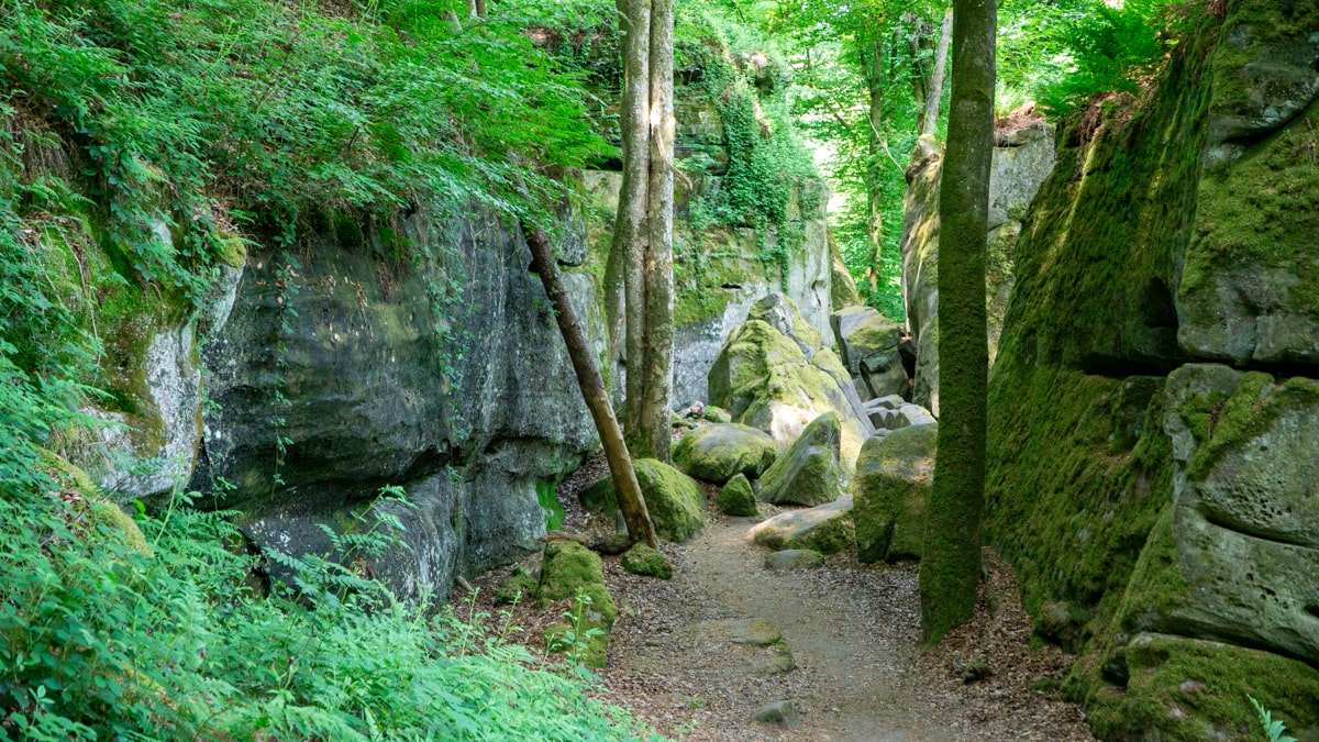 De Mullerthalregio ligt in het oosten van Luxemburg, tegen de grens met Duitsland aan. Deze streek wordt ook wel Klein Zwitserland genoemd. Niet omdat je er Alpen vindt, maar door de vele zandsteenrotsen, smalle kloven, grotten en bossen waar een mysterieuze sfeer hangt.