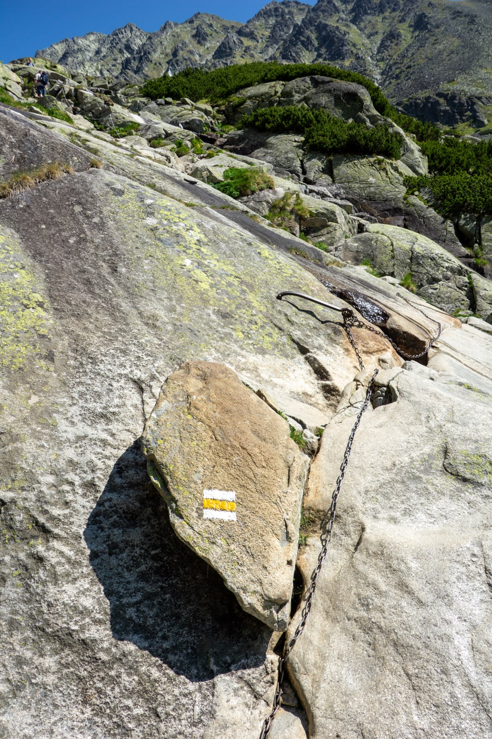 Vanaf daar klim je flink omhoog, met zelfs een stuk waar je je aan een ketting omhoog moet trekken. Daarna volgt een prachtige stuk langs verschillende bergmeren, waaronder het indrukwekkende Kozie pleso.