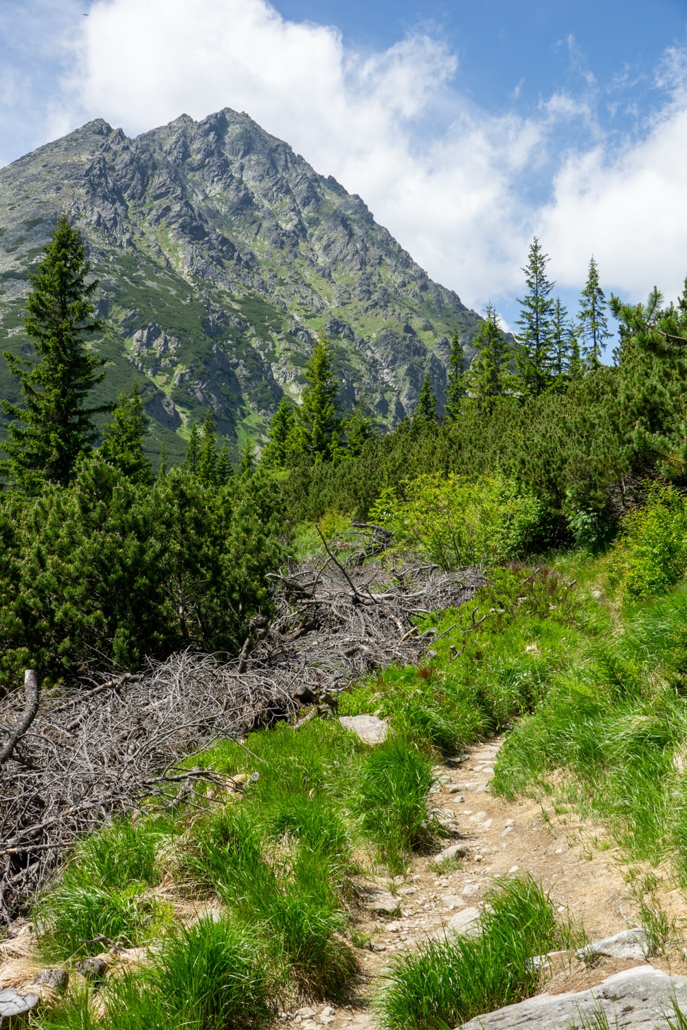 Dit was onverwacht een van mijn favoriete wandelingen in de Slowaakse Tatra. Niet te moeilijk, niet te makkelijk, en het tweede deel echt een geweldig mooi uitzicht. Het eerste stuk (blauwe route) vanaf Tatranské Zruby loopt gestaag omhoog door het bos. Wat me opviel: ik kwam hier echt niemand tegen. Heerlijk rustig. Pas bij de aftakking richting het meer (via de gele en daarna groene route) zag ik weer wat andere wandelaars.
