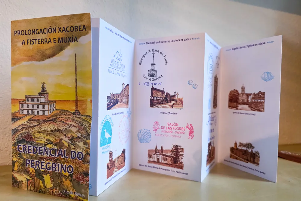 Als je na Santiago verder loopt naar Finisterre of Muxía, kun je een speciaal pelgrimspaspoort gebruiken. Dit is niet hetzelfde als de credential die je nodig hebt voor de Compostela, maar een extra boekje waarin je stempels verzamelt op weg naar het einde van de wereld.