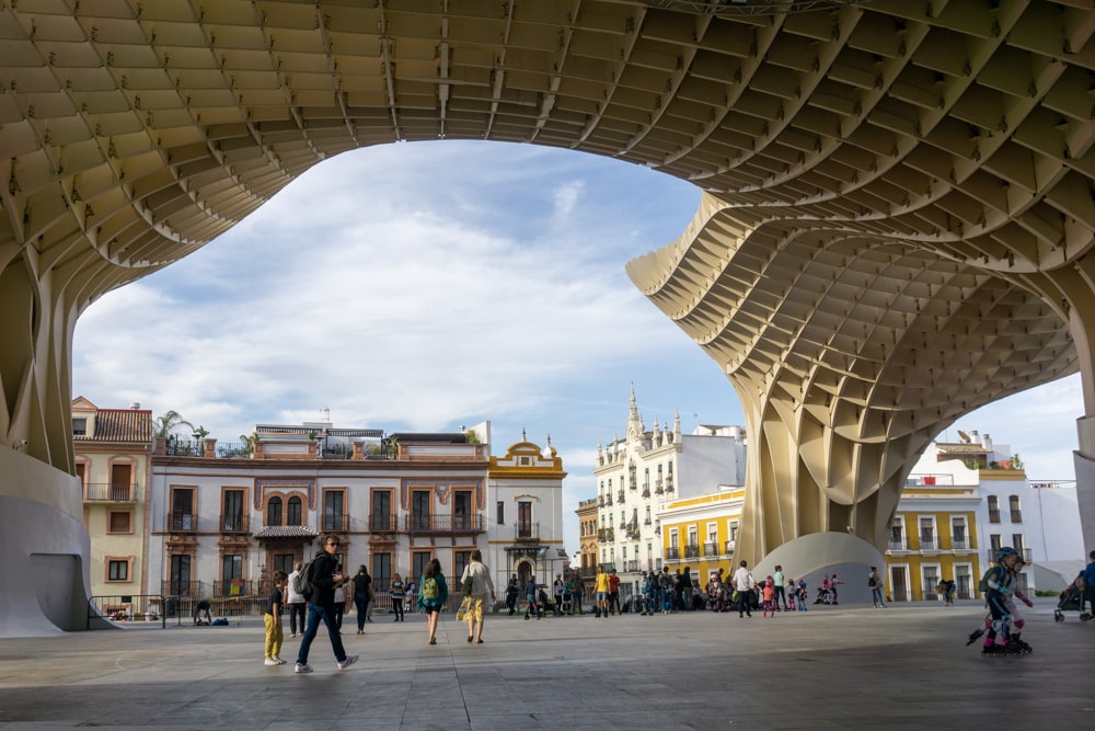 Je vindt hier ook een van de meest bijzondere Sevilla bezienswaardigheden: de prachtige houten constructie Metropol Parasol oftewel Setas de Sevilla. Elke keer als ik hier langsloop ben ik onder de indruk. Het is zo mooi om te zien!